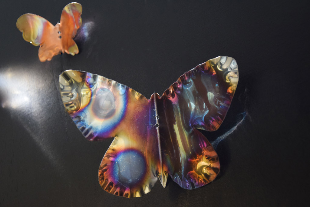 Farfalle Aurora in rame e acciaio fuse con fuoco